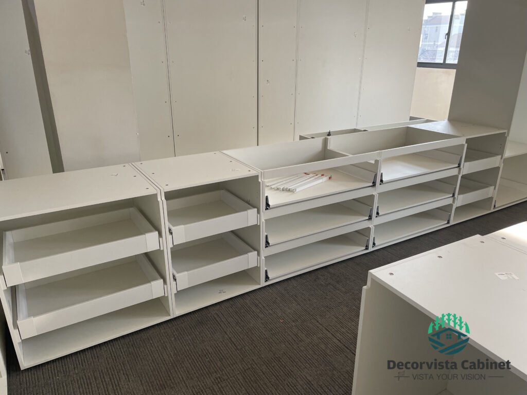 Instead of solving organization after installation, luxury millwork factories now design organization into the cabinet structure: