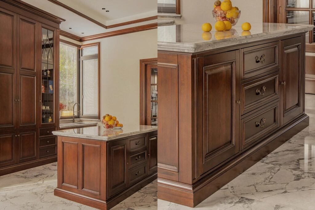 Customized Construction and Joinery: Say goodbye to simple nails and glue. Our artisans use traditional joinery techniques like dovetail or mortise-and-tenon construction to ensure every cabinet box is rock-solid and fits your kitchen space perfectly, living up to the promise of “precision down to the very last inch.”